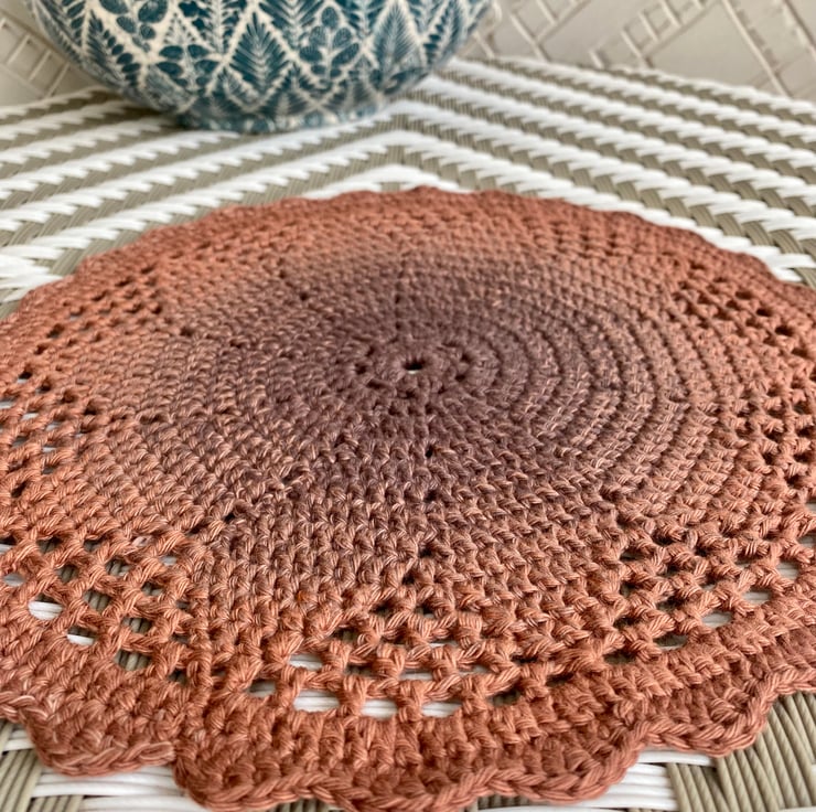 The mat is perfect for adding instant colour as well as being very useful too. Use as a place mat, a plant pot stand, a fruit bowl mat or as a mat for a vase of flowers. It will protect your surfaces too from moisture and scratches.