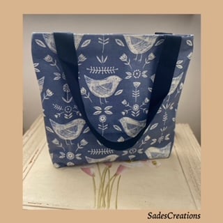 This beautiful tote bag in Narvik Blue design is waterproof and fully lined with 100% cotton. It has a box base to retain shape and a recessed zip to seal the tote shut. The handles are made from navy cotton herringbone tape webbing with a handle drop of 11 inches with a navy zip.