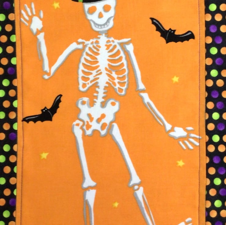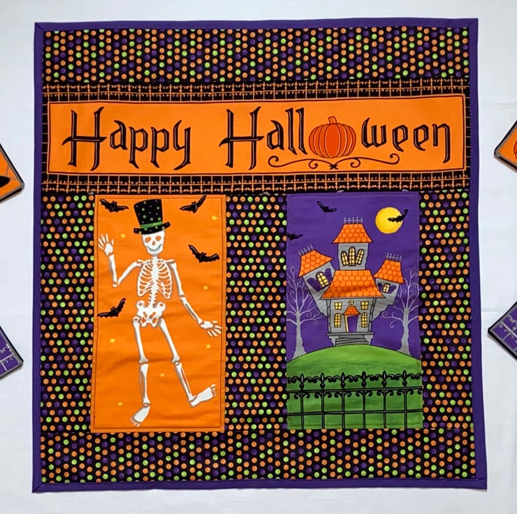 Brighten up your Halloween table with this patchwork table centre and matching buffet/placemats. A fabulous set that can be used for years to come.