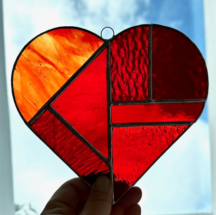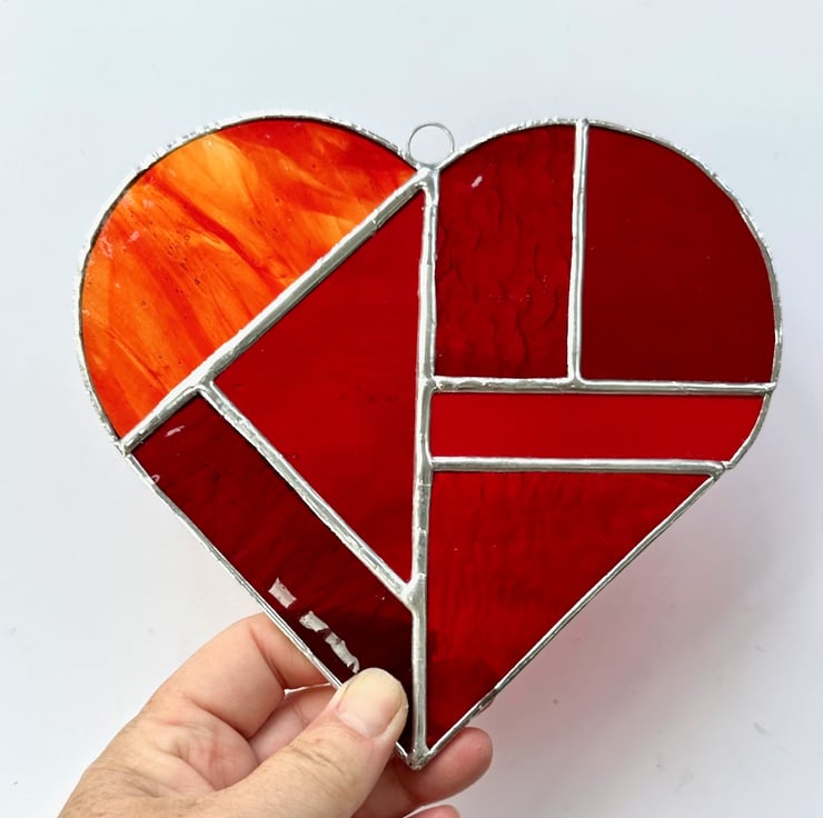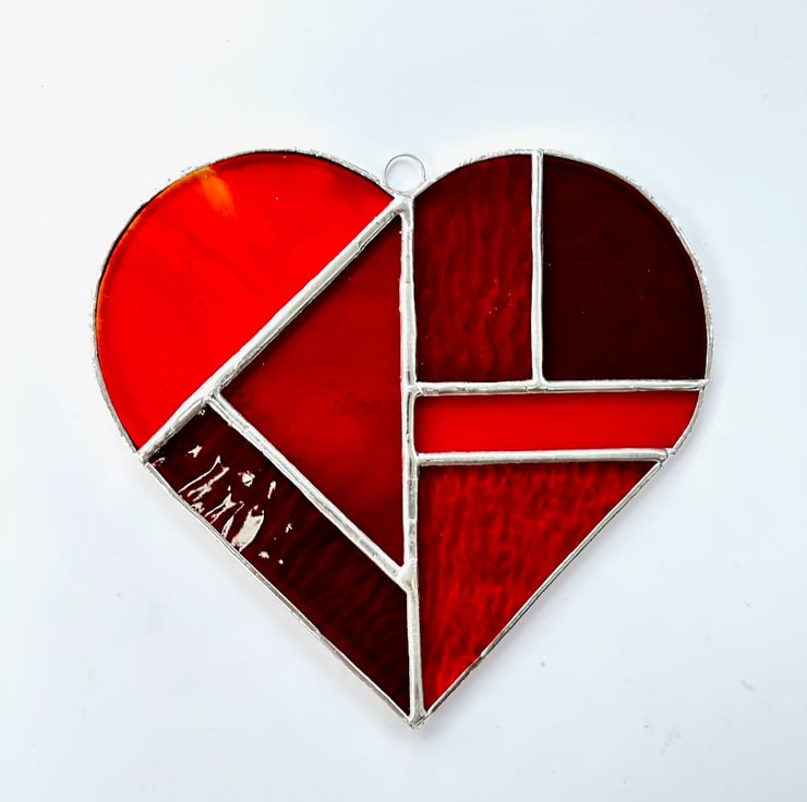 This heart has been made using glass in 7 shades of red with lots of lovely textures.