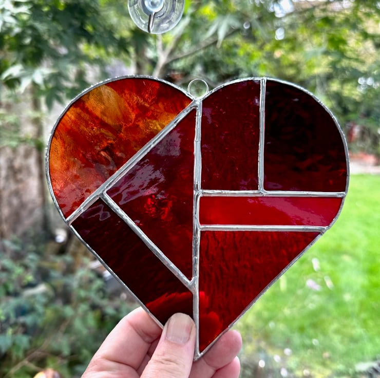 This beautiful heart is made from a lovely selection of different types of red stained glass.