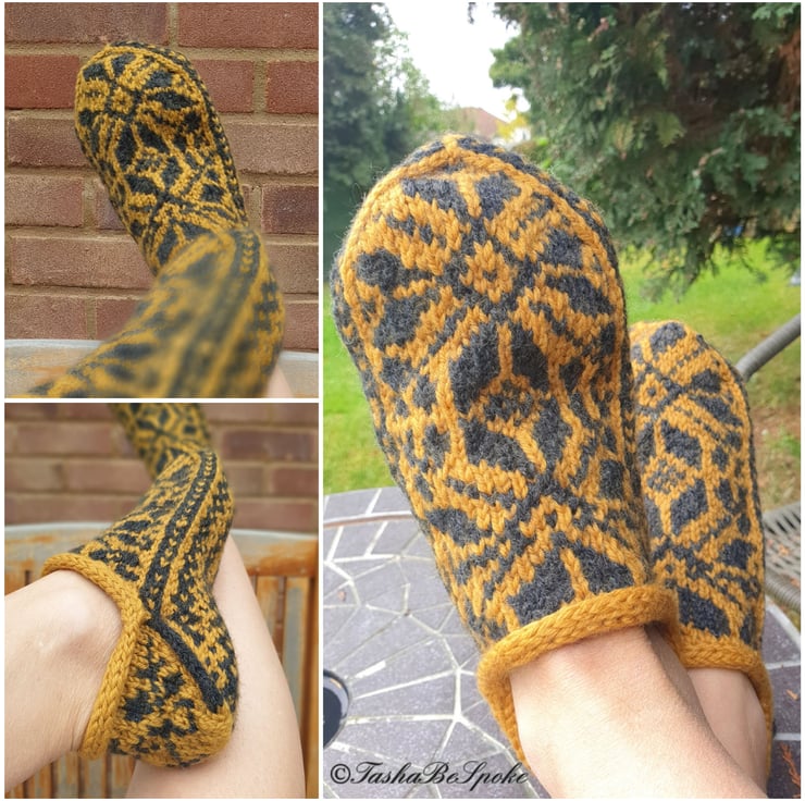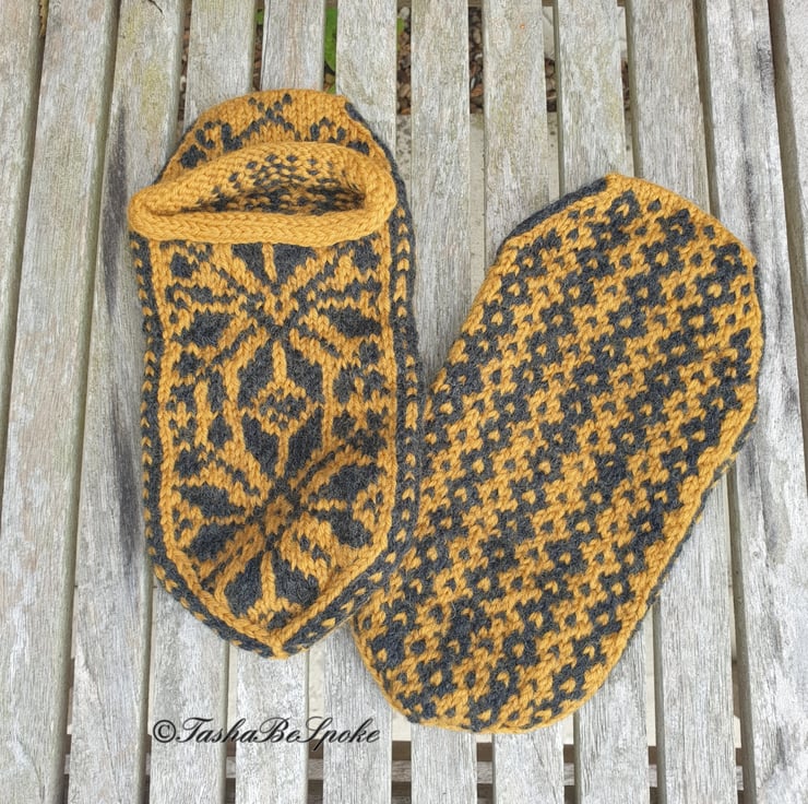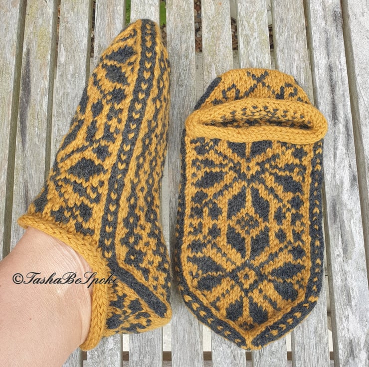 Luxury, stylish and cosy slippers socks hand knitted with pure wool.