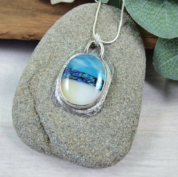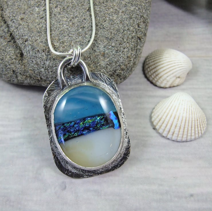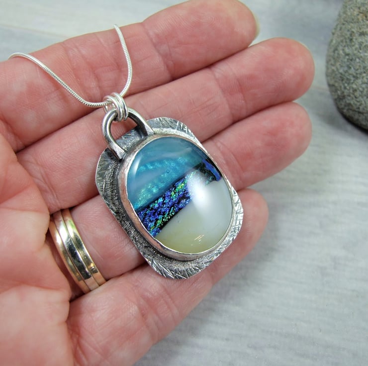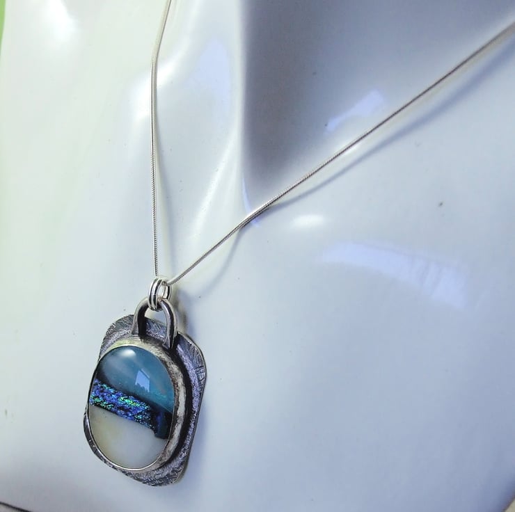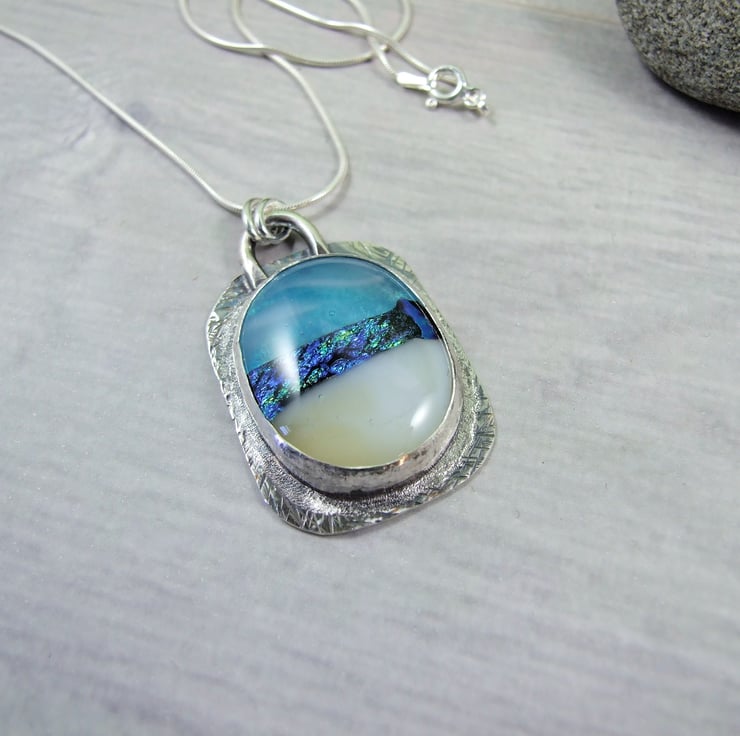Seascape Necklace. Sterling Silver and Fused Glass Cabachon pendant.
