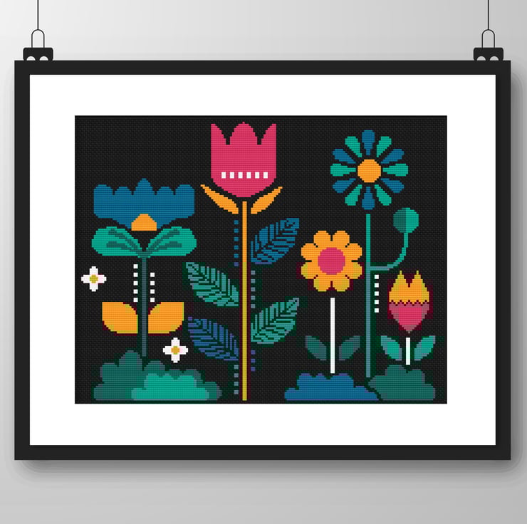 Cross Stitch Pattern Scandinavian style Flower Garden Modern Contemporary cross stitch PDF chart by Vivienne Powers Counted PDF chart 248