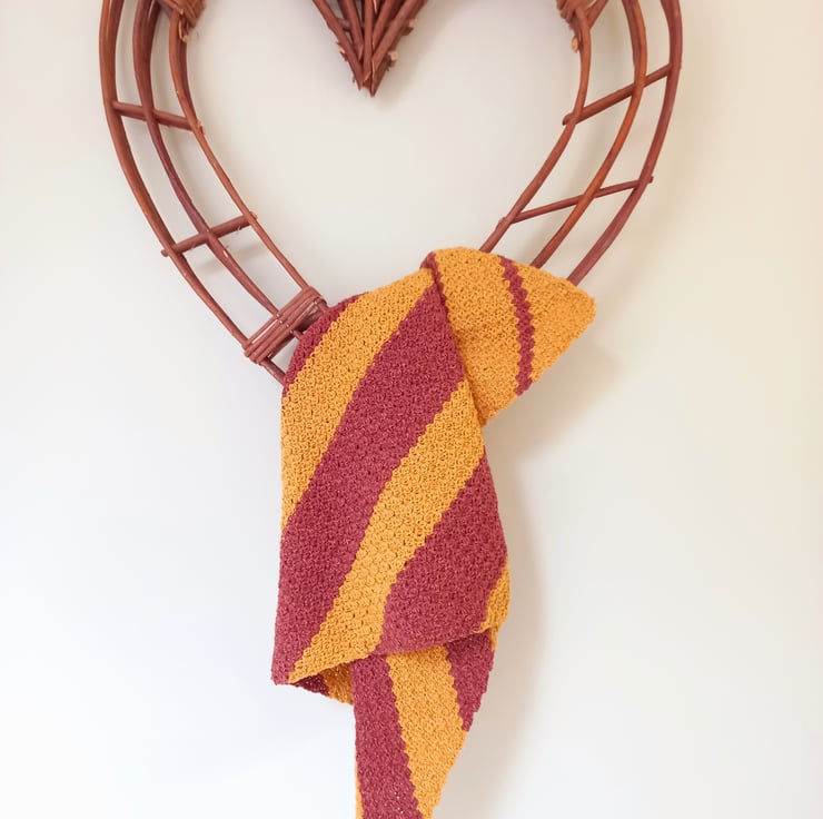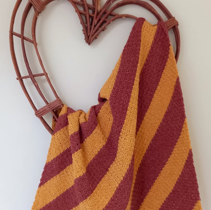 The finished blanket measures 90 x 180 cms and has wide diagonal stripes. you can make your throw any size you like and it would be very easy to alter the size of the stripes or add more.