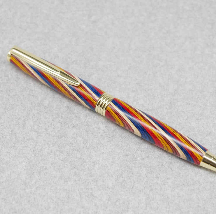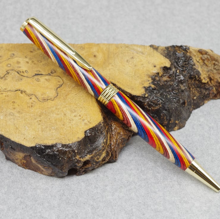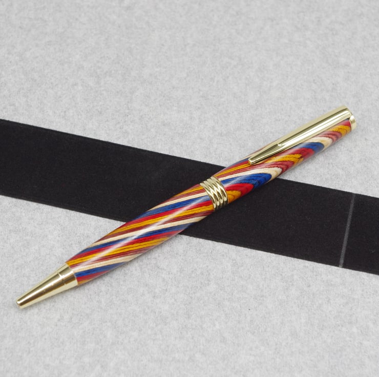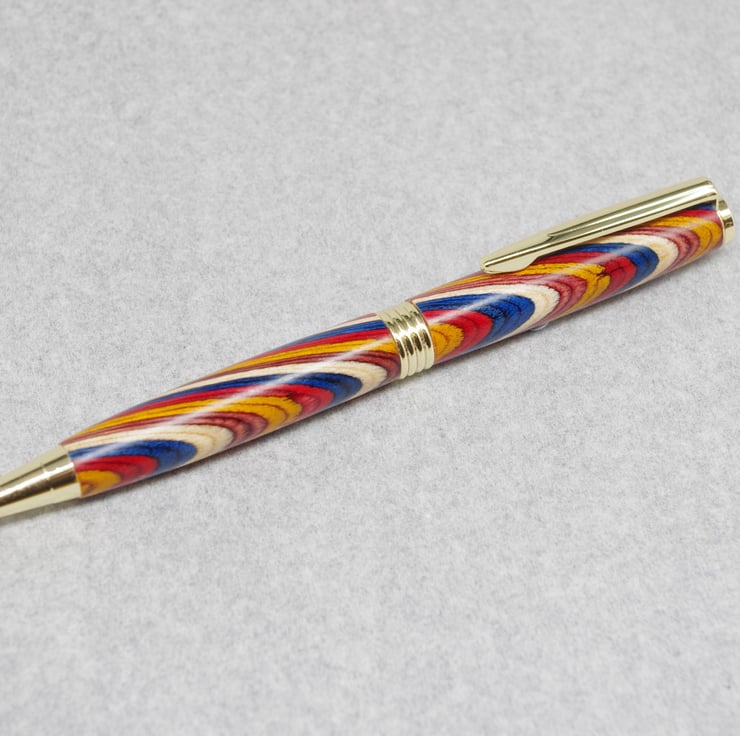 Hand Turned Wooden Pen. Multi Coloured.