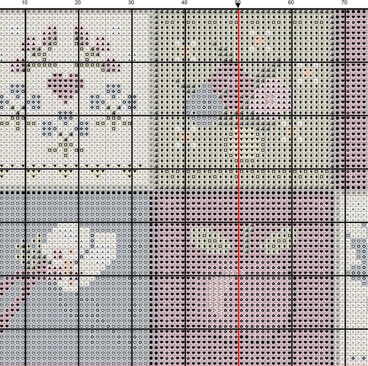 Each chart created in 3 formats colour blocks, Pale colour blocks with symbols on the top (like in the magazines) and black and white symbols, to suit whichever printer you have. I love bright colours, and that's the recurring theme to all my patterns. I am sure you won't be disappointed!