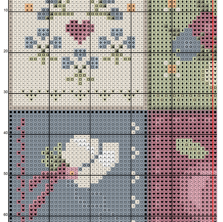 I have loved cross stitch all my life... I strive to make beautiful cross stitch patterns. Charts which are a breeze to use, split into four equal segments and as large as possible on A4 printable PDF's.