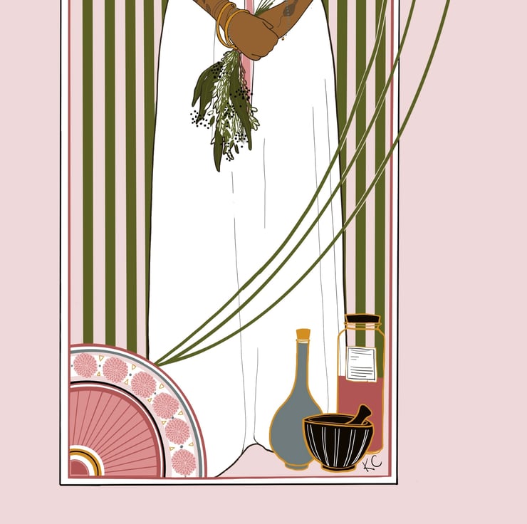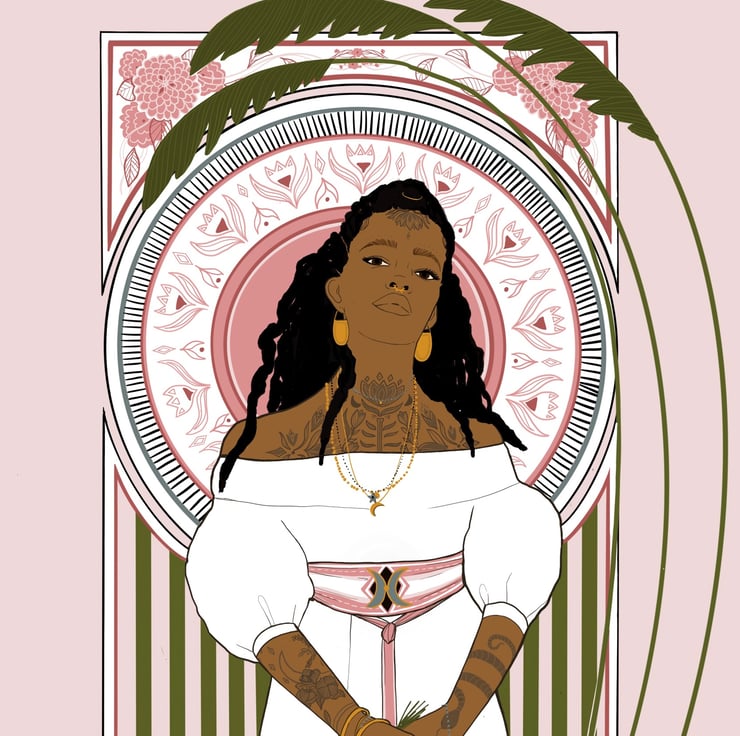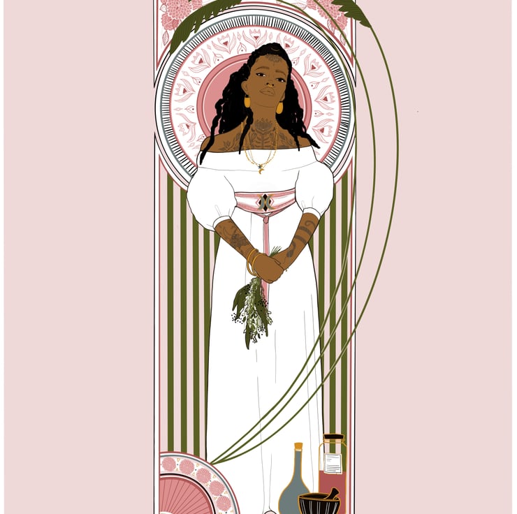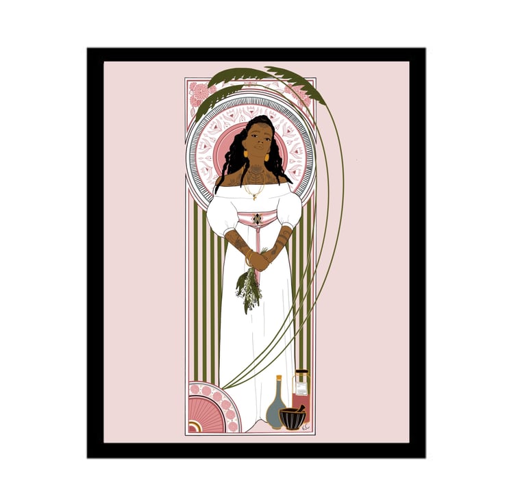 This beautiful spiritual and natural healer was inspired by a woman who I follow on Instagram called Beretta Scott King and the wonderful Art Nouveau style of Alphones Mucha.