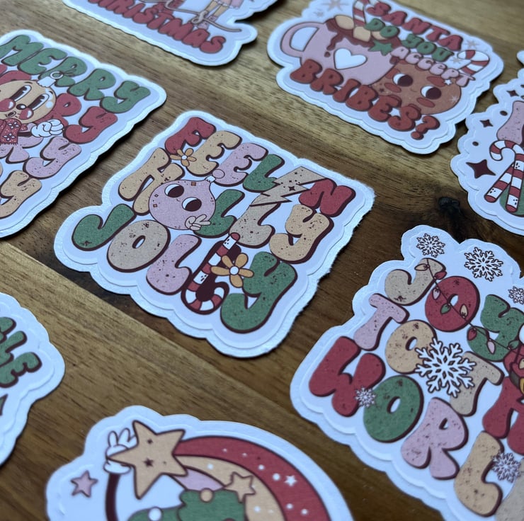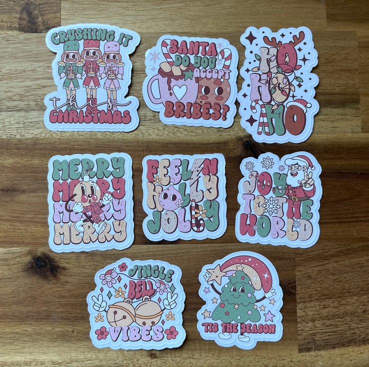 A pack of handmade Christmas themed stickers.