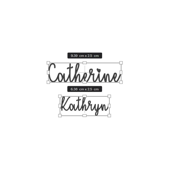 If ordering more than one name and you require these to match, please let us know in the personalisation field. E.g. Kathryn & Catherine - we can make the characters in Kathryn larger to eliminate the below line character affecting appearance.