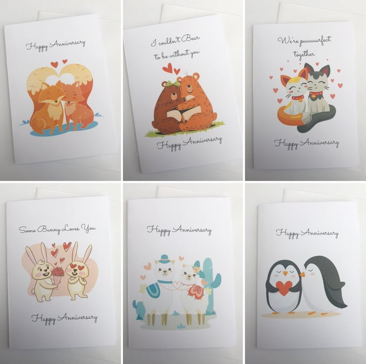 Wish your other half a Happy Anniversary with one of our handmade cute animal theme cards!