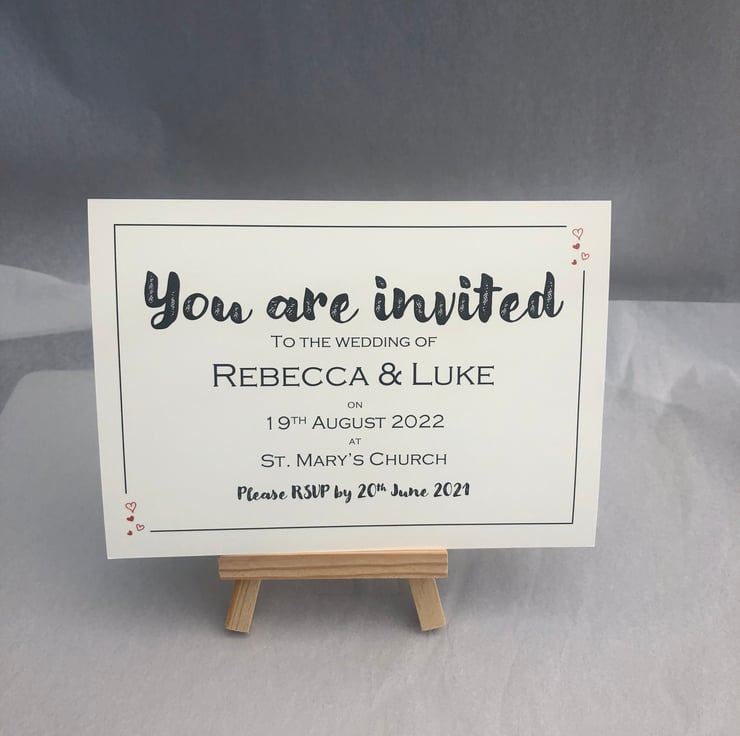Personalised with the couple's name and date, these Save The Date cards are perfect for sending out to your guests.