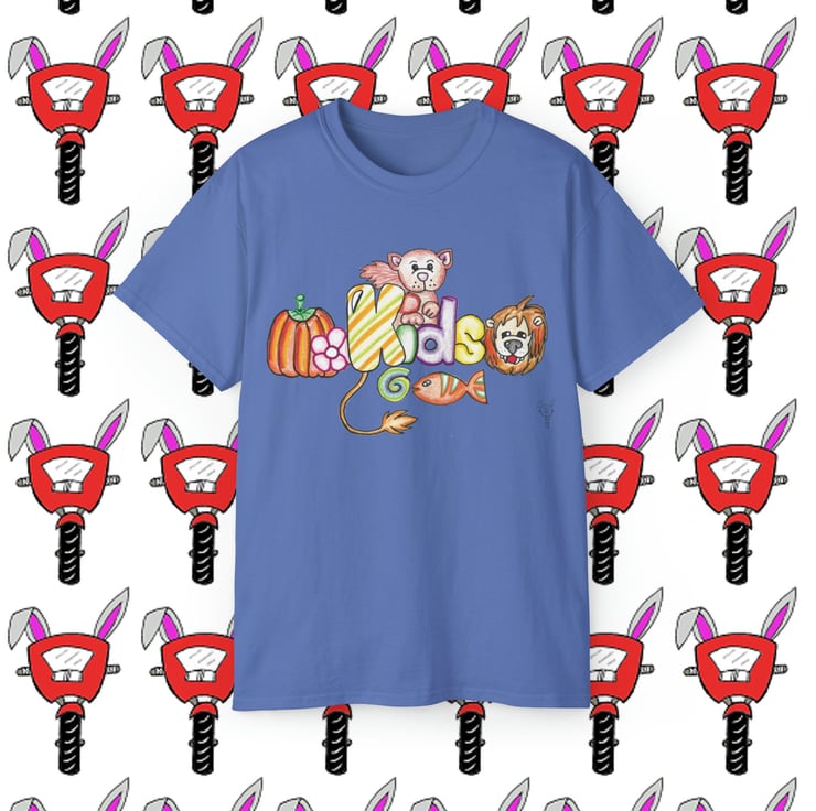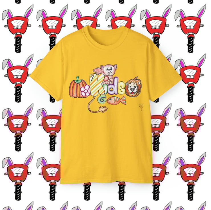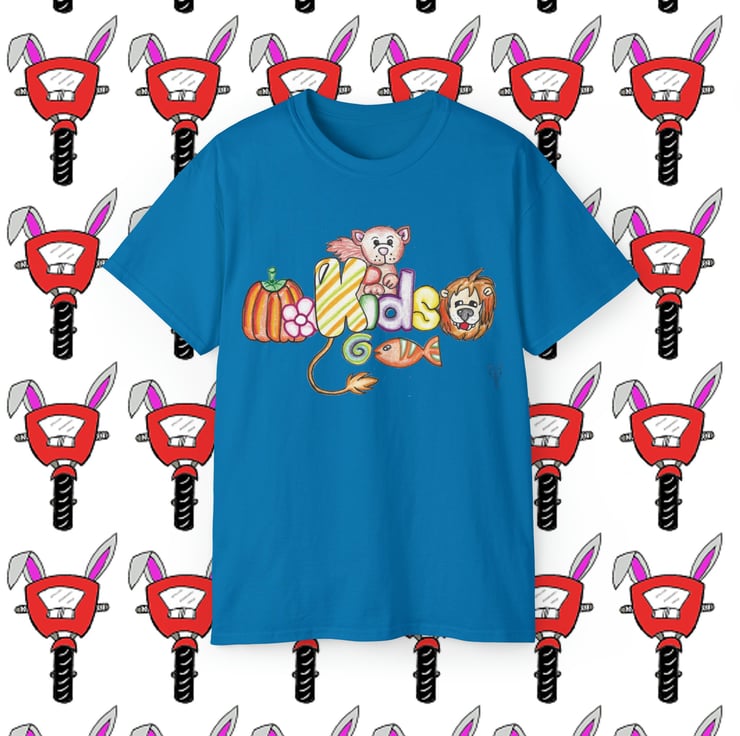 Kids fun unisex ultra cotton tshirt created by Bikabunny using coloured pencils for a soft shaded look and inks to keep the detail crisp. The shoulders are tapped for a good upper-body fit. There are no side seams, ensuring a clean, unbroken flow. The collar has ribbed knitting for improved elasticity. The materials that went into this product are sustainably sourced and economically friendly.