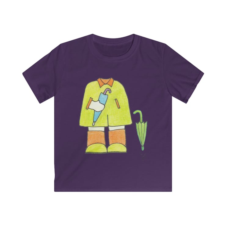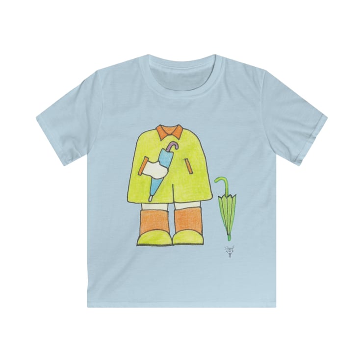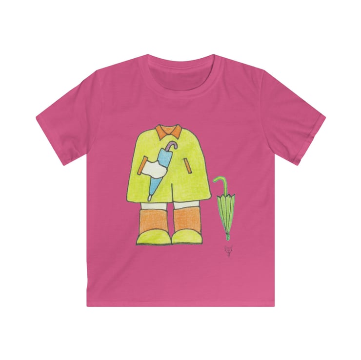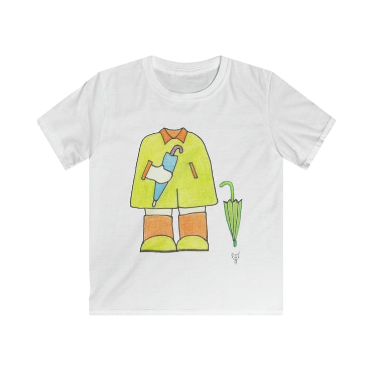 Rainy Days Mackintosh and Wellies Outfit Kids Softstyle Tshirt. This design has been hand drawn by Bikabunny using inks and coloured pencils, which gives it a soft shaded feeling. This is a unique design, which has been created so your child looks fantastic, original and individual. This is part of my Kids Collection - please see my other designs. A special selection of softstyle yarns keep this shirt feeling great with every touch. Fine quality print makes it an irreplaceable item in every kid's wardrobe.