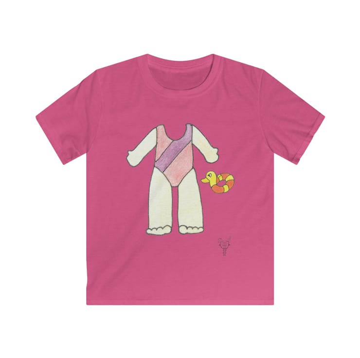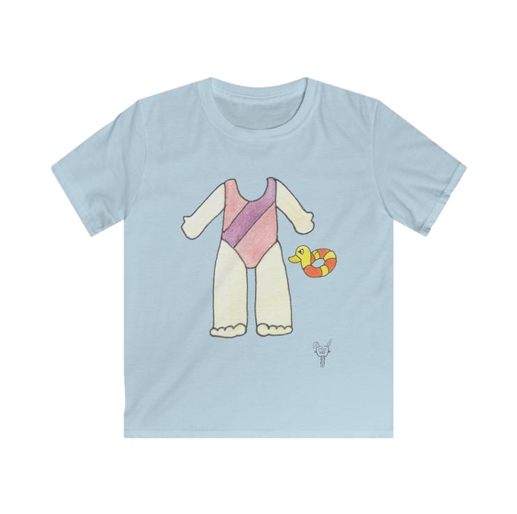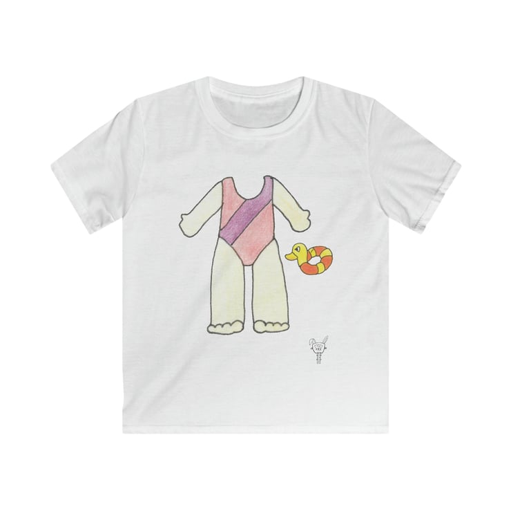 Cute Girls Swimming Costume Kids Softstyle Tee. This design has been hand drawn by Bikabunny using inks and coloured pencils, which gives it a soft shaded feeling. This is part of my Kids Collection - please see my other designs. A special selection of softstyle yarns keep this shirt feeling great with every touch. Fine quality print makes it an irreplaceable item in every kid's wardrobe.