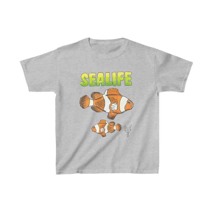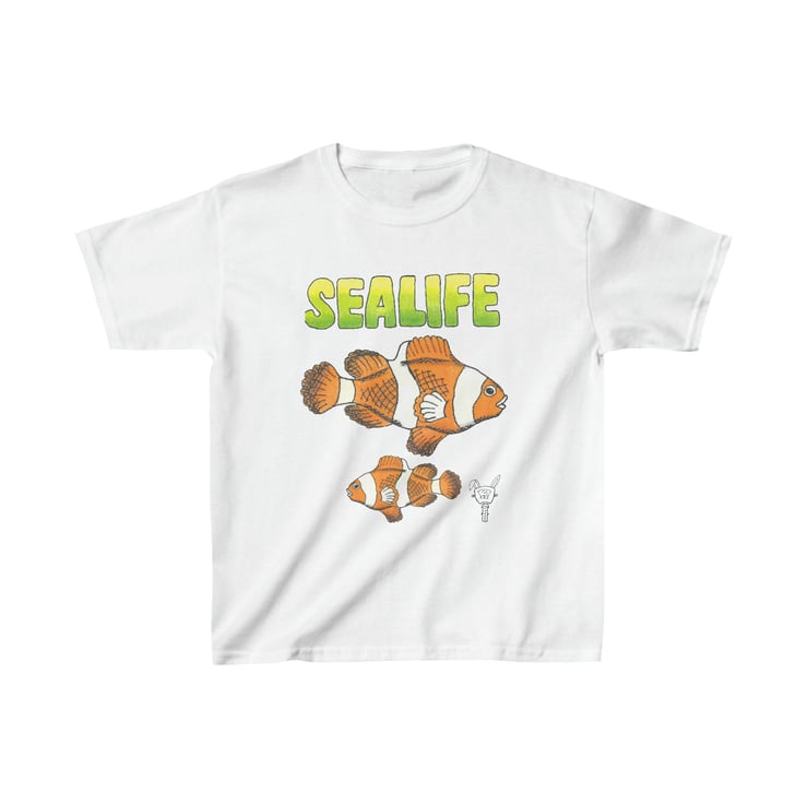 Sea Life 'Finding Nemo' Clown Fish Kids Heavy Cotton Tee Hand Drawn Design by Bi