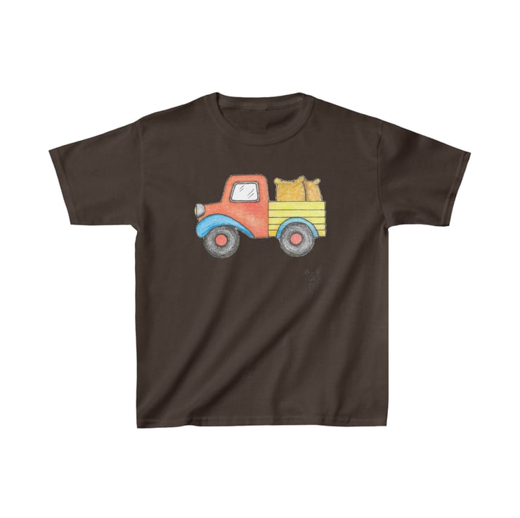 This cute Farm Truck Lorry Vehicle is a hand drawn image by Bikabunny - making it unique and individual. This original design has been coloured in using pencils, so that it is soft and beautifully shaded and is part of my Kids Collection - please see my other designs.