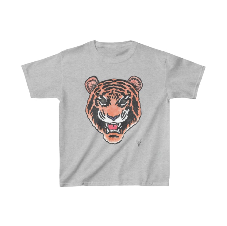 Tiger Face Kids Heavy Cotton Tshirt by Bikabunny