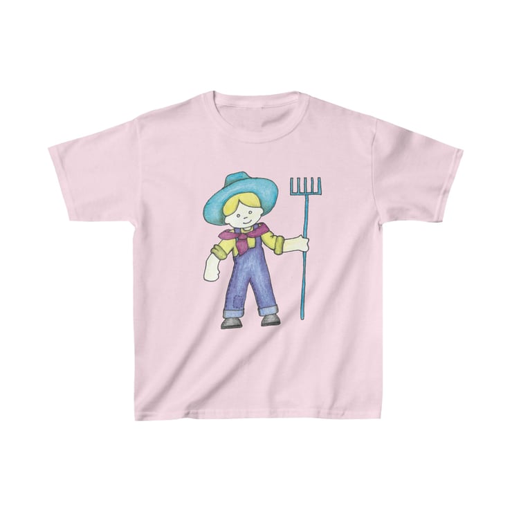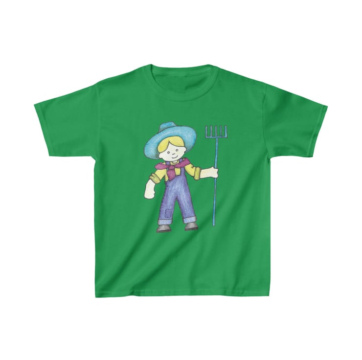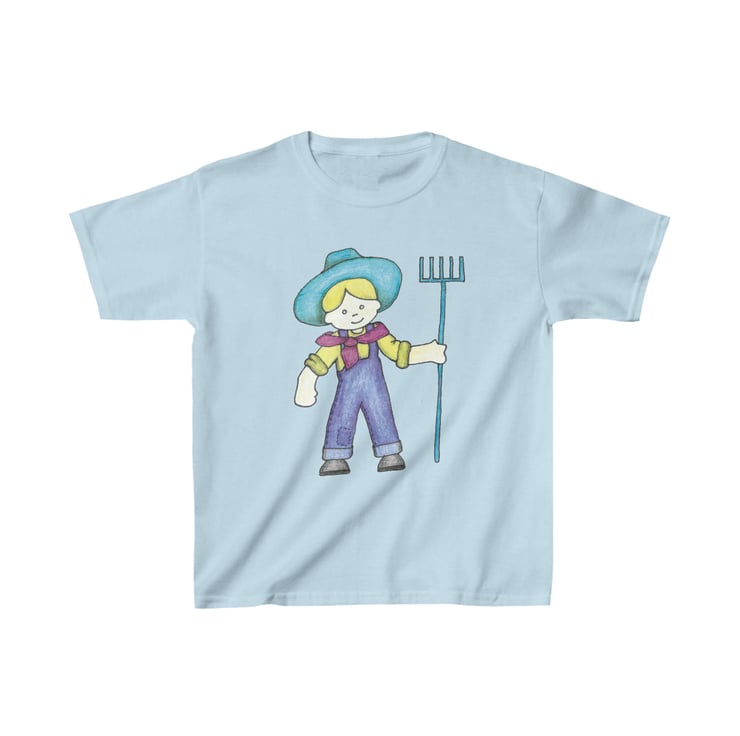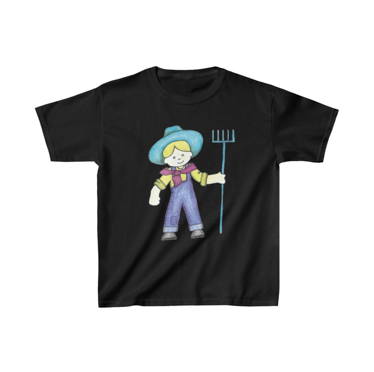 This cute Farm Boy is a hand drawn image by Bikabunny - making it unique and individual. This original design has been coloured in using pencils, so that it is soft and beautifully shaded and is part of my Farm Collection - please see my other designs. The kids heavy cotton tshirt is perfect for everyday use. The fabric is 100% cotton. These fabrics are prime materials for printing. The shoulders have twill tape for improved durability. The collar is curl resistant due to ribbed knitting. There are no seams along the sides.