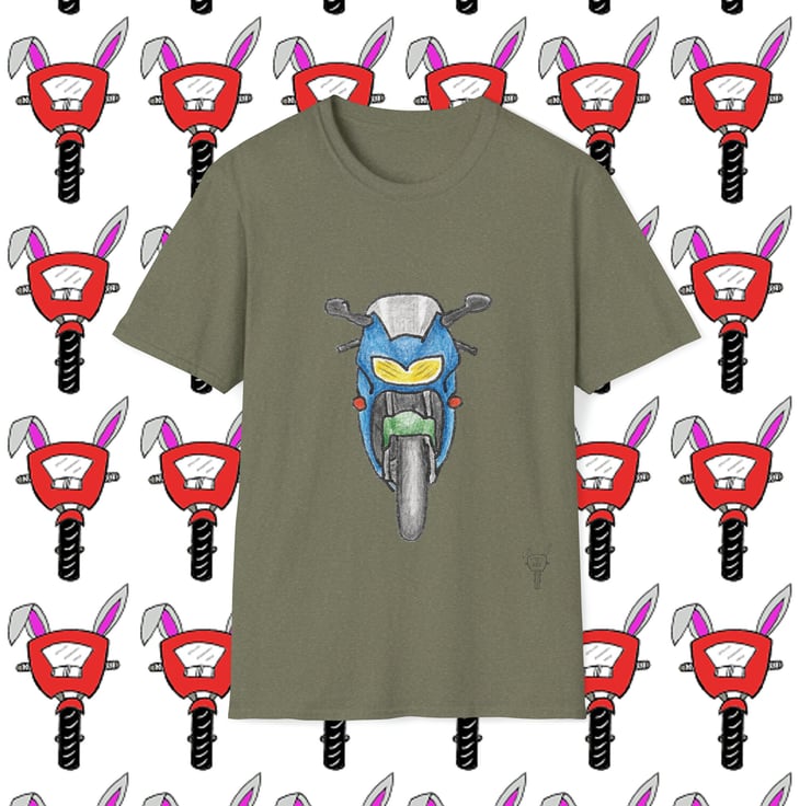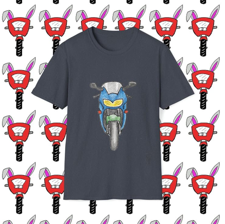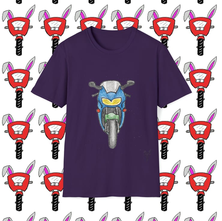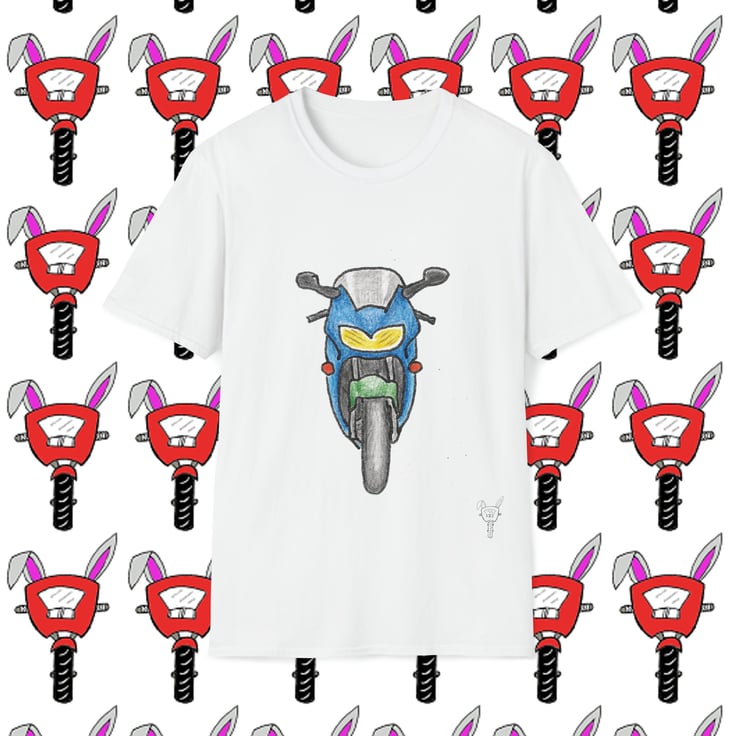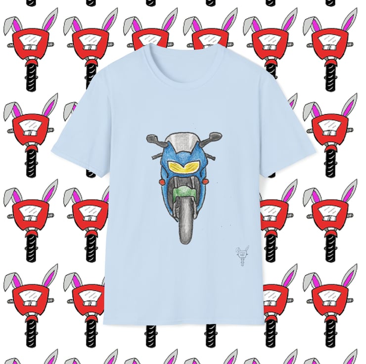 Honda CBR6 1 Headlight design by Bikabunny. Hand drawn design using coloured pencils and inks.. Part of my Biker Collection - see my other designs. The unisex soft-style t-shirt puts a new spin on casual comfort. Made from very soft 100% cotton. The shoulders have twill tape for improved durability. There are no side seams. The collar is made with ribbed knitting to prevent curling damage.