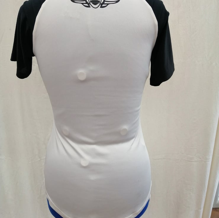 This is a sports performance tshirt with wicking abilities and perforations on the sleeves for sport wear.