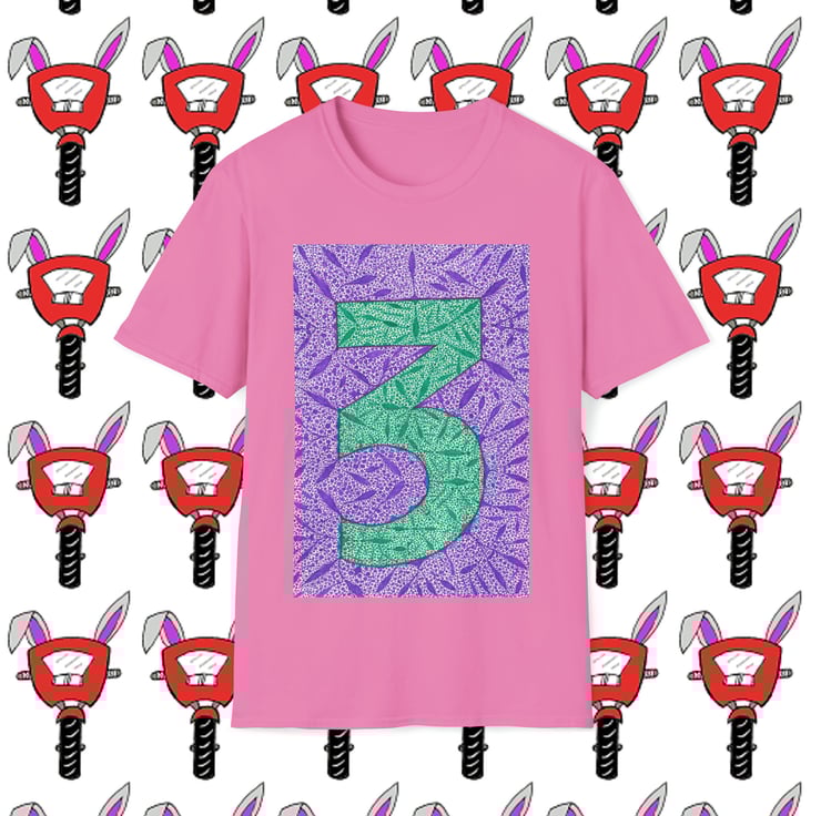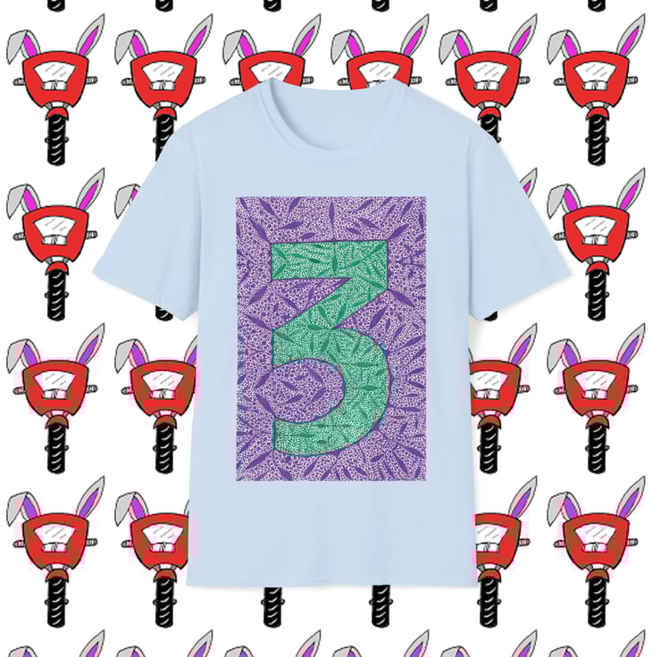 Number 3 colorful hand drawn design created by Bikabunny using inks. Part of my Doodle Collection - please see my other designs. The unisex soft-style t-shirt puts a new spin on casual comfort. Made from very soft materials, this tee is 100% cotton for solid colors. The shoulders have twill tape for improved durability. There are no side seams. The collar is made with ribbed knitting to prevent curling damage.