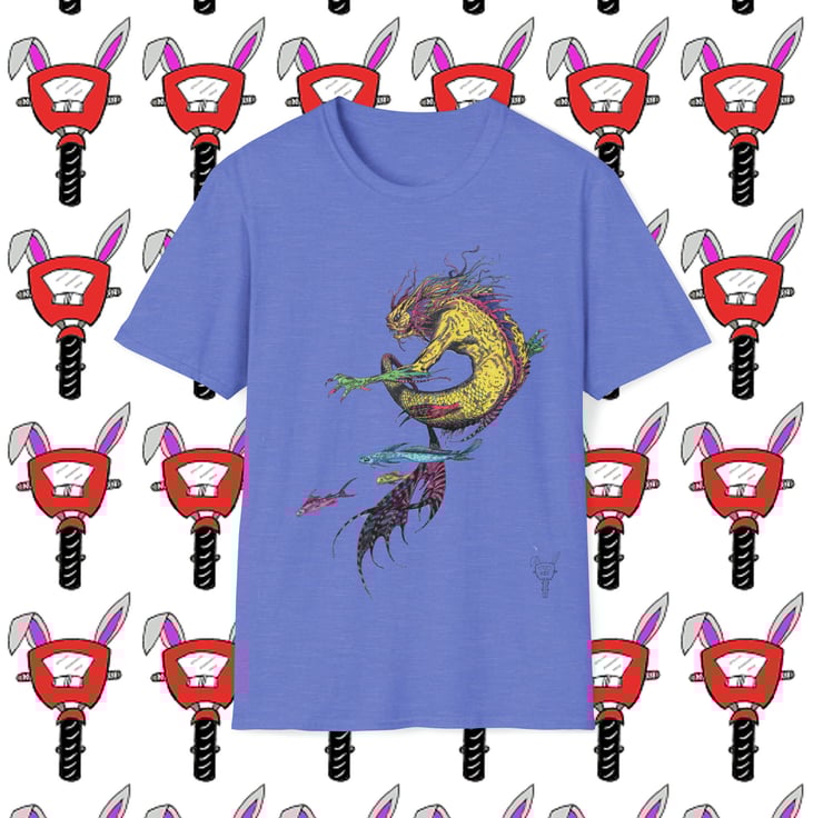 Merman Yellow Dragon Mermaid Fantasy is hand drawn by Bikabunny. It is a unique and original design created in inks. Merman are legendary mythical creatures, which are human but animal or fish-like. Merfolk are one of the classical mythological creatures - probably the second most famous to dragons. A fabled marine creature with the head and upper body of a man (or dragon) and the tail of a fish. Half human, half fish sirens of the sea - legendary sea creatures chronicled in maritime culture since time immemorial. The ancient Greek poet Homer wrote of them in 'The Odyssey'.