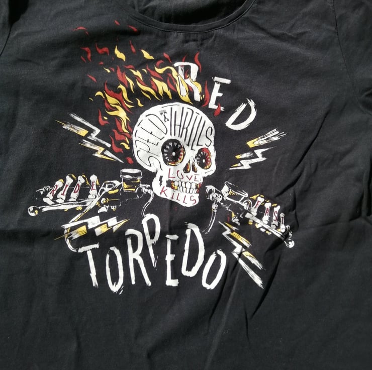 This is a Vintage 2000's Red Torpedo 'Speed Thrills - Love Kills' Top Tshirt size 20.