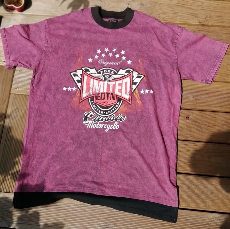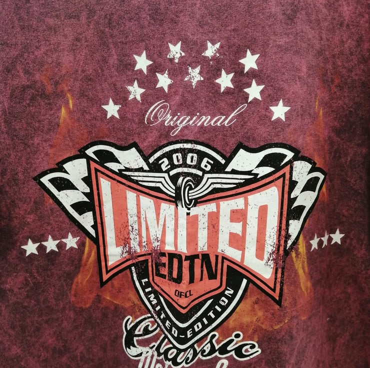 This is a vintage 2000's Limited Edition tshirt in Medium. A great looking tshirt in good condition with a distinct design classic motorcycles design. It is not one colour all over but mottled with orange flames.