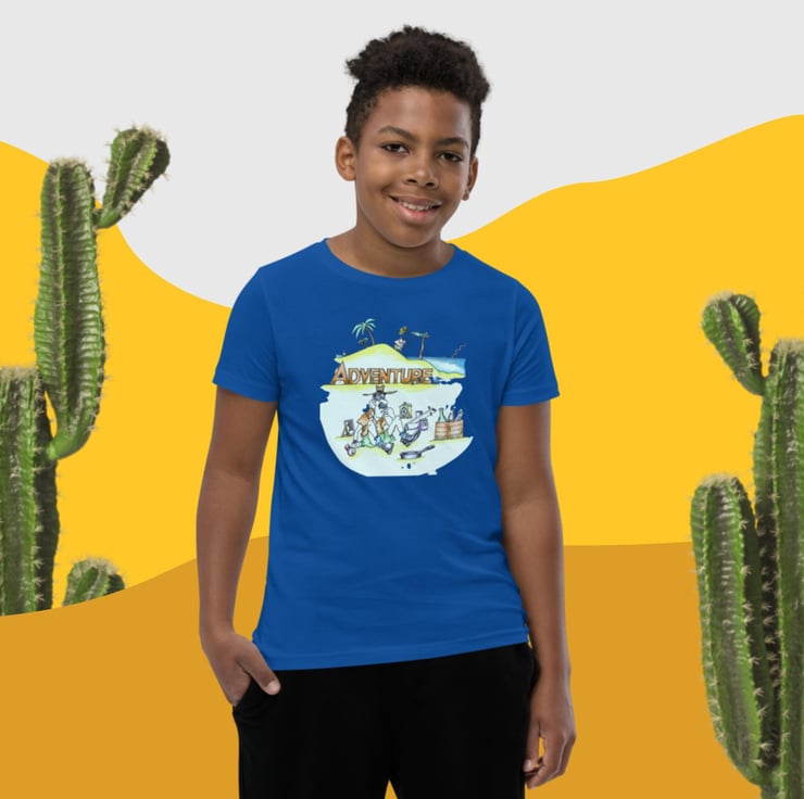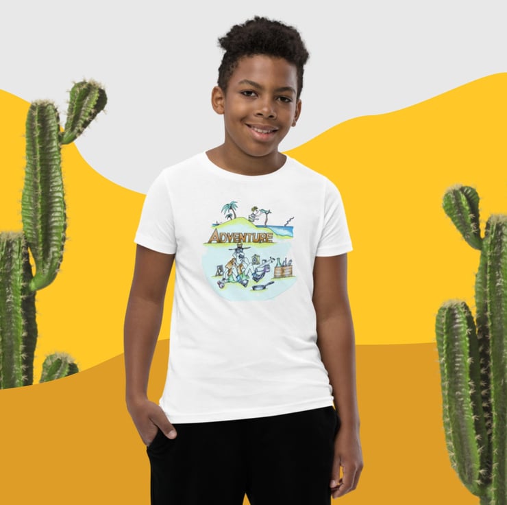 Adventure desert island design which has been hand drawn by Bikabunny, making it original and unique. The design has been created using coloured pencils, so it is very colourful and softly shaded. This is the tshirt that you've been looking for, and it's bound to become a favourite in any youngster's wardrobe. It's light, soft, and comes with a unique design that stands out from the crowd wherever you go!