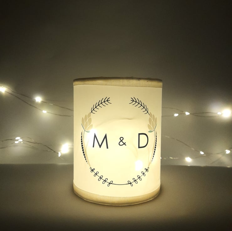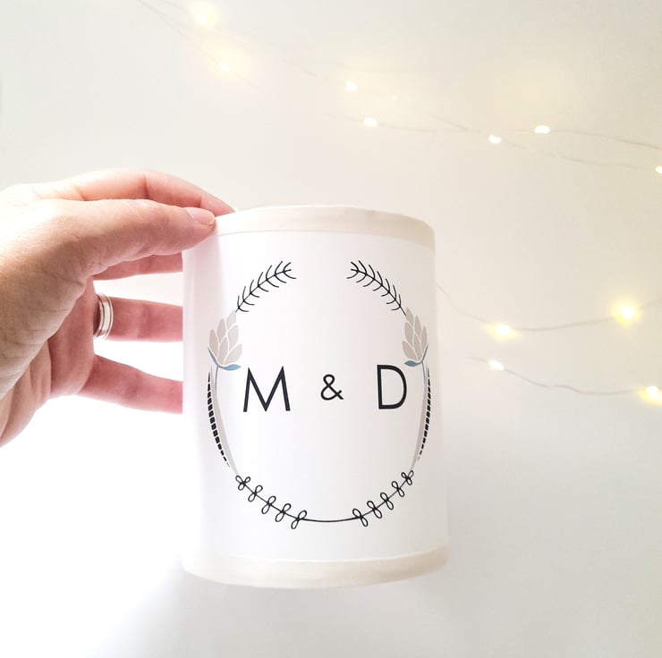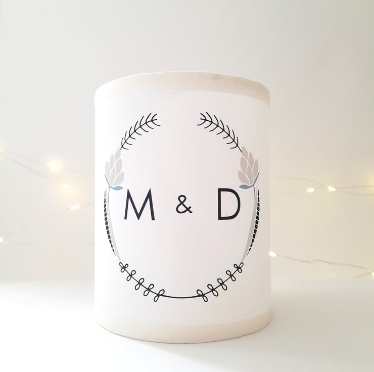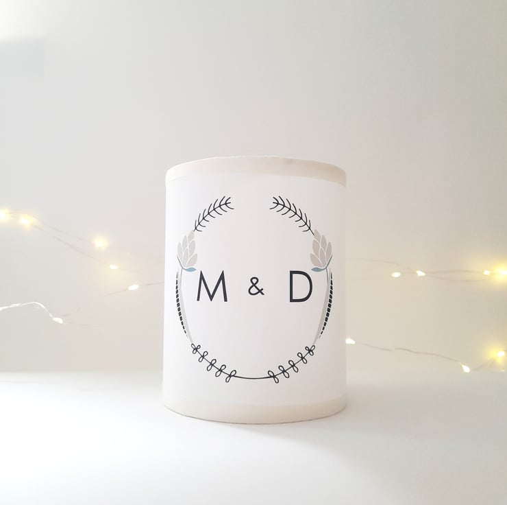 This elegant Monogram personalised lantern is the perfect addition to your wedding table decorations, but is suitable for any occasion! The minimal floral wreath in dark blue and grey make it really special along with the subtle glow that creates a calm and sophisticated ambience.