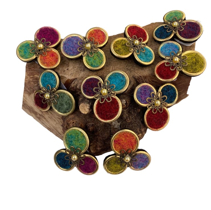 I have several of these brooches available - all are needle felted in different colour combinations and one will be sent at random.