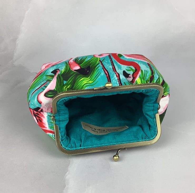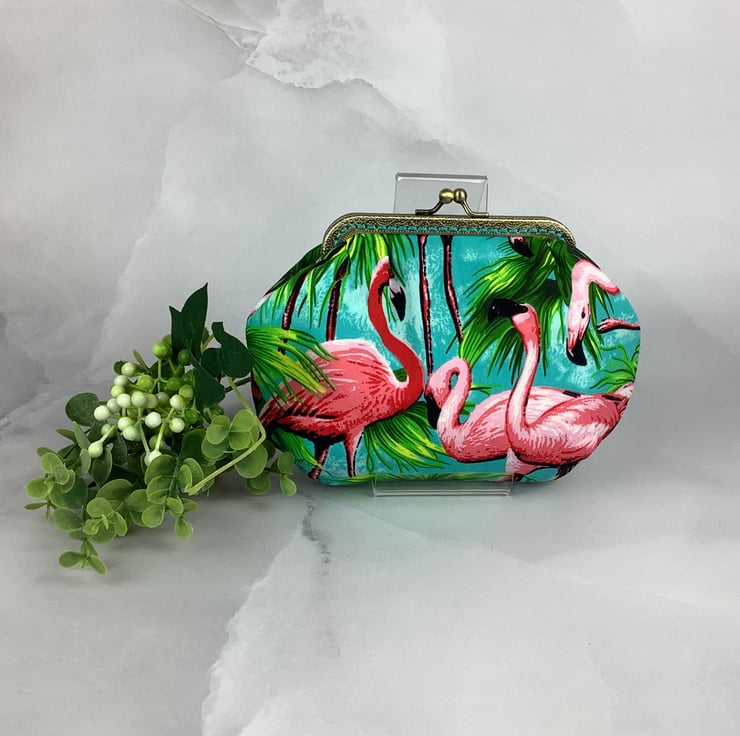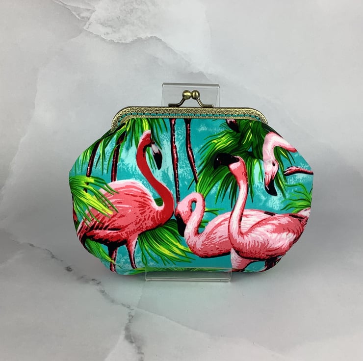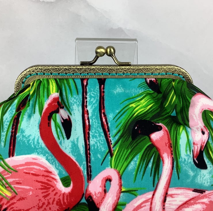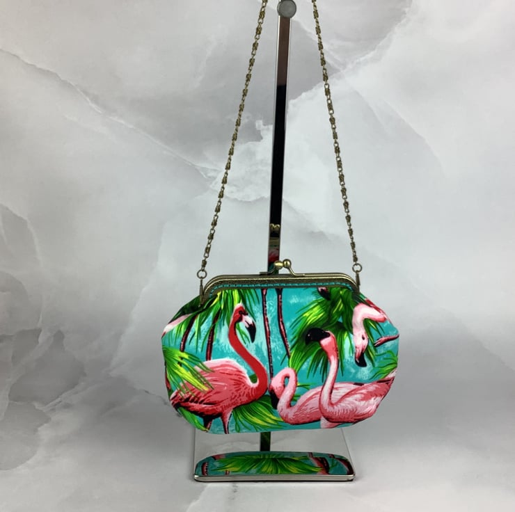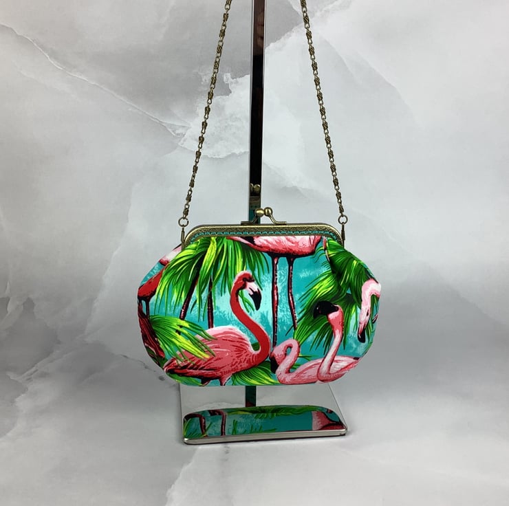 Flamingos small clutch bag, Tropical makeup bag, Optional chain, Handmade
