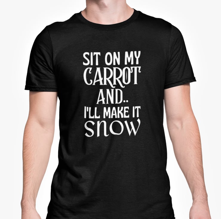 Sit On My Carrot - Christmas T Shirt- Funny Joke Friends Banter Present