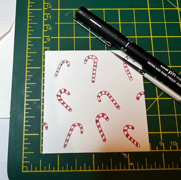 A petite 3x3 (7.6x7.6cm) white card, hand painted using watercolours.
