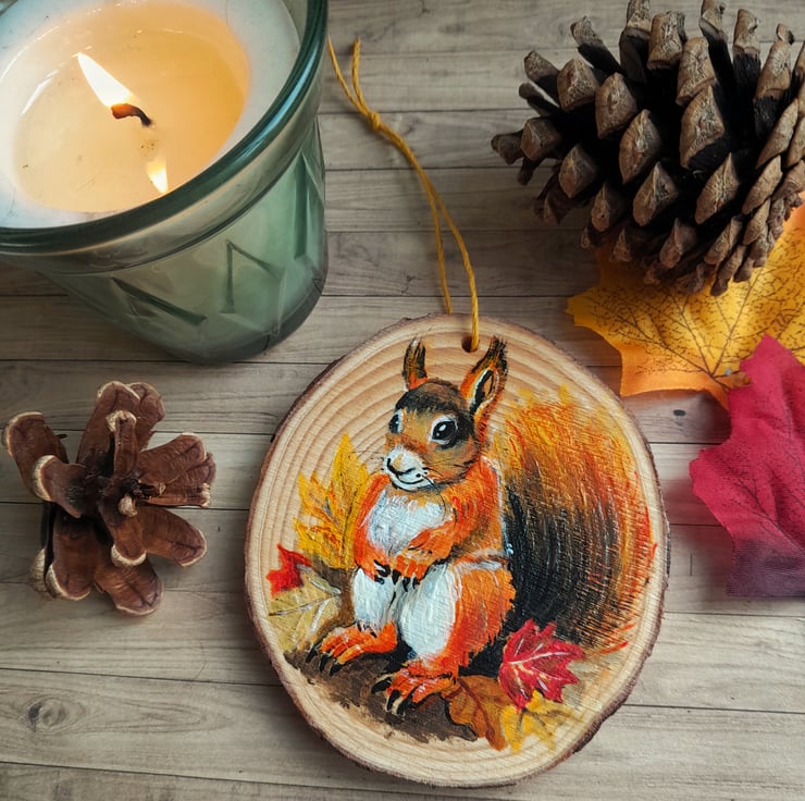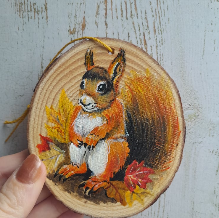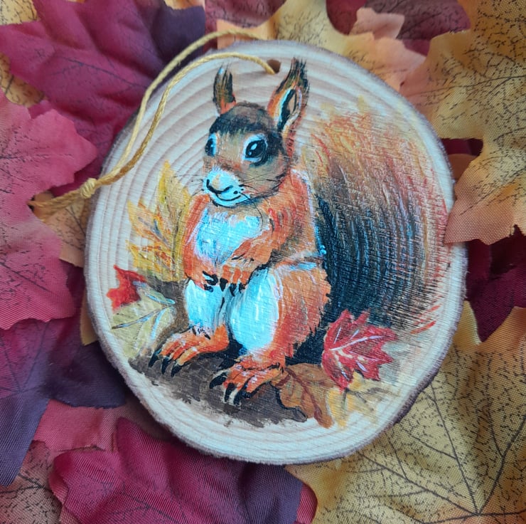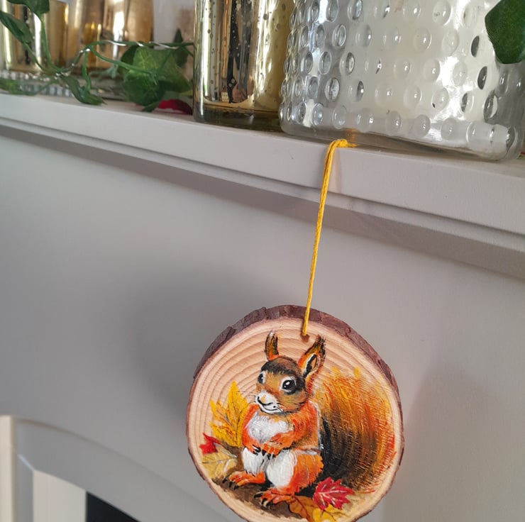 Create a warm and cozy feel to your home this Autumn with this beautiful Red squirrel wooden slice which was Hand painted with acrylic paints and finished with a satin varnish.