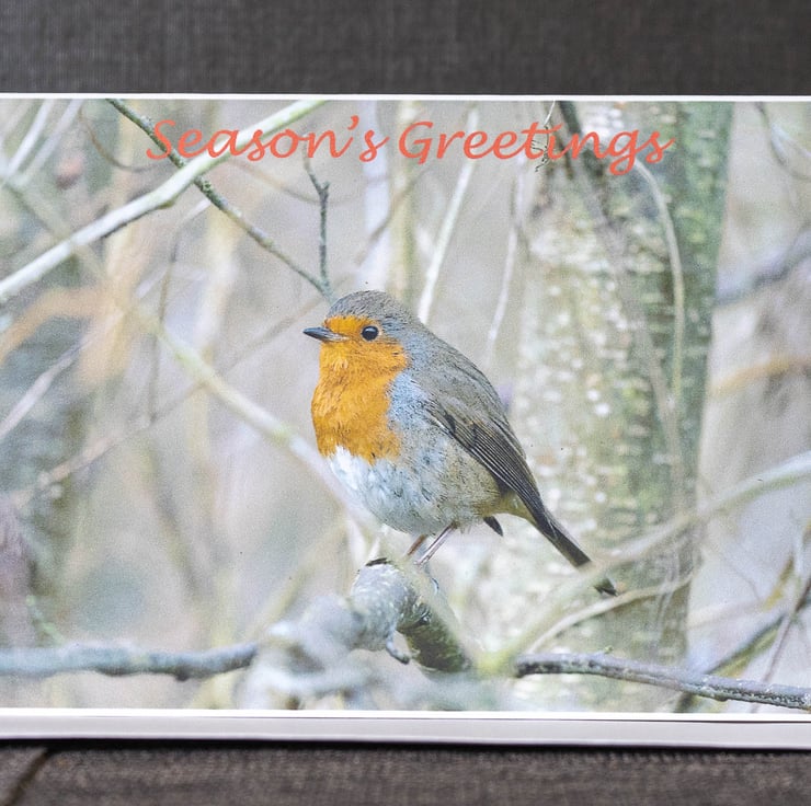 Pack of 8 handmade Christmas cards featuring my original photographs of Robins (2 of each card per pack).