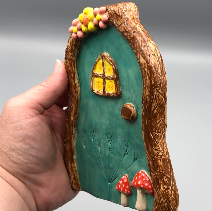 This beautiful Bluey- green fairy door has been hand crafted using high quality stoneware clay and fires in my kiln to 1200oC creating a strong finished ceramic piece that will be the perfect addition to your fairy garden.