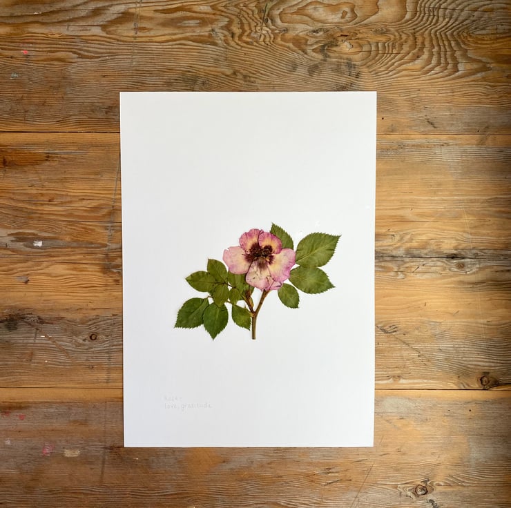 I have grown this rose in my garden in Cheshire, and preserved the flower using the traditional method of flower pressing.