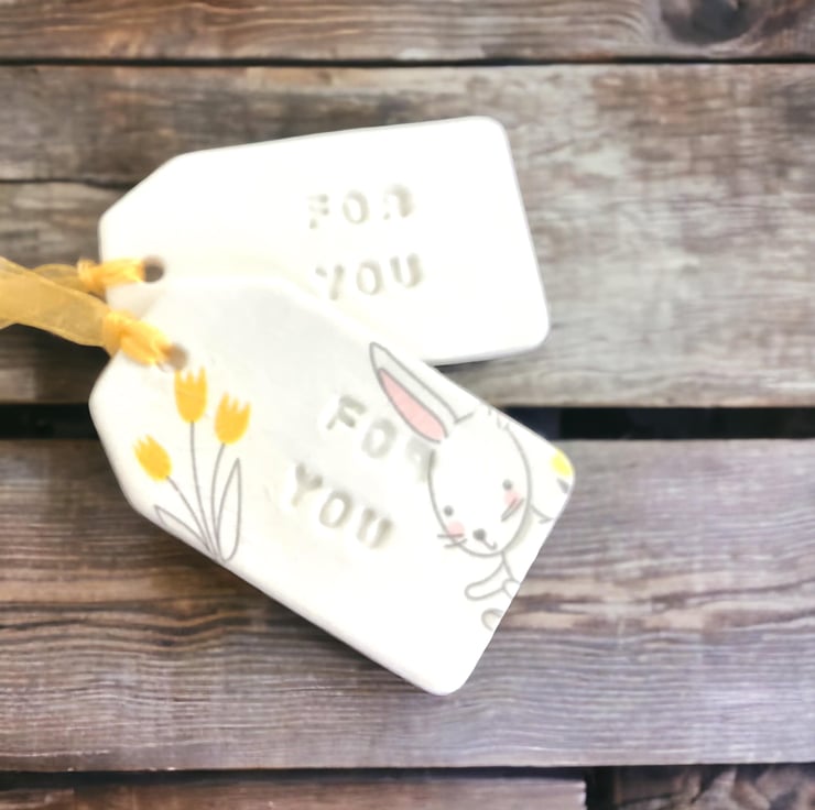 A gorgeous set of 2 handmade clay gift tags. These beautiful tags would finish off any gift and having a reverse side which is blank you can also write your own message in felt pen, pencil or acrylic paint pens.