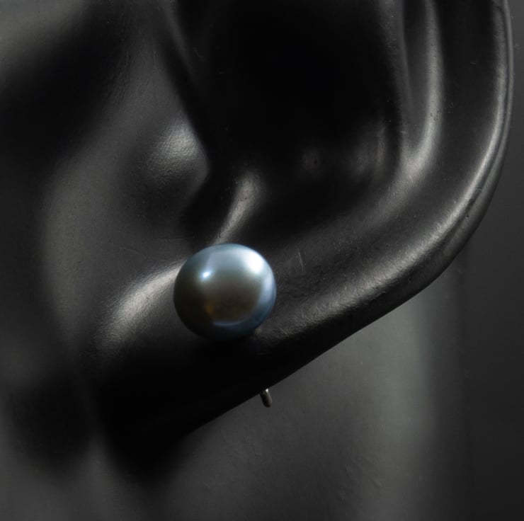 8mm forest green pearls and silver plated stud earrings with a butterfly back to secure.