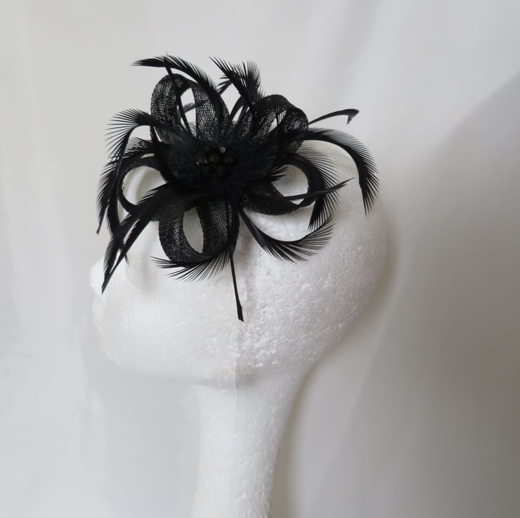 This is an attractive and eye catching sinamay loop fascinator in all black.