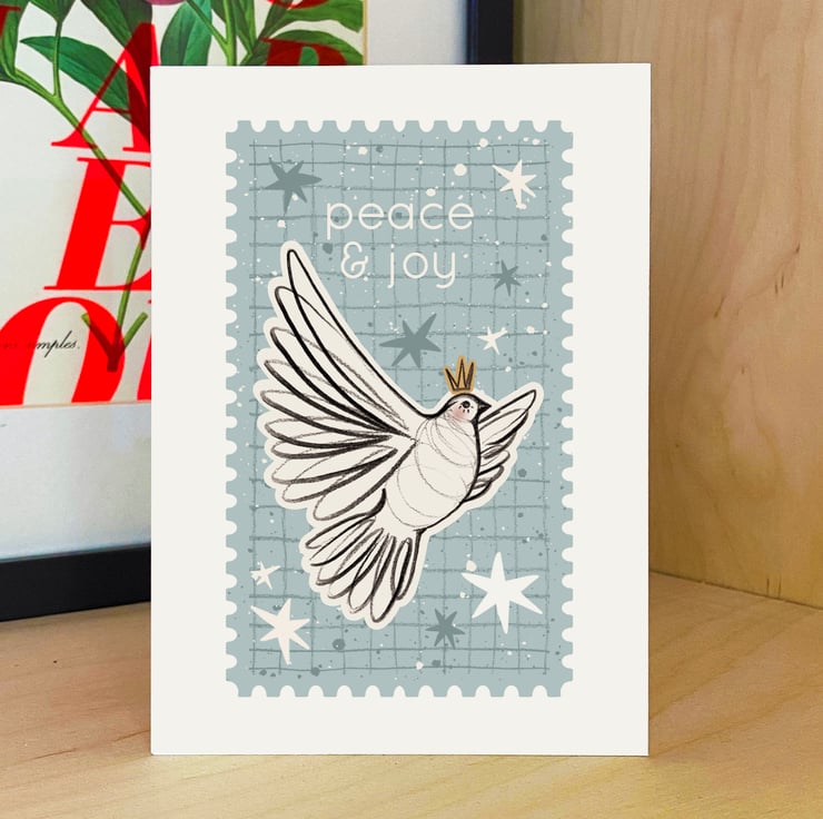 A peaceful Christmas Dove. Originally hand drawn with pencil and a selection of handmade textures.