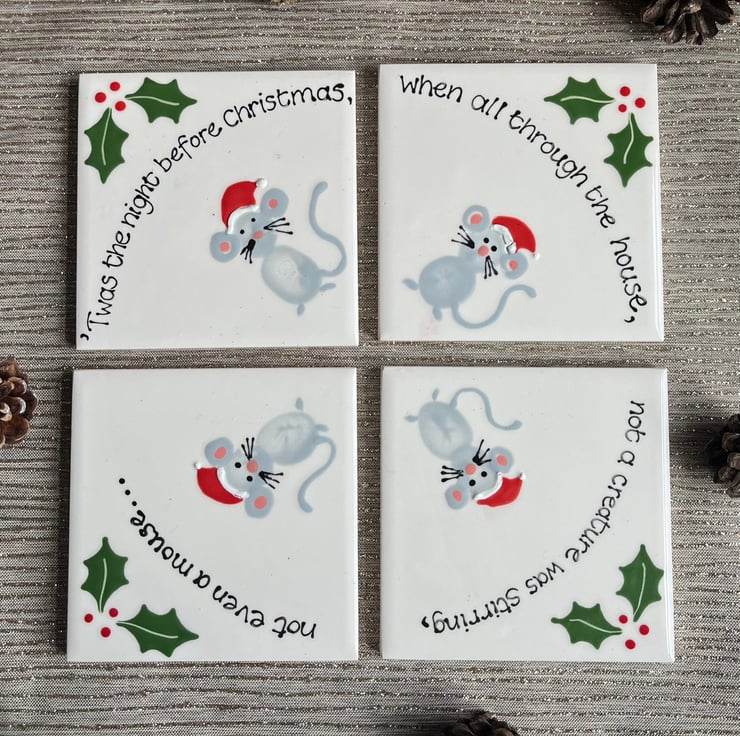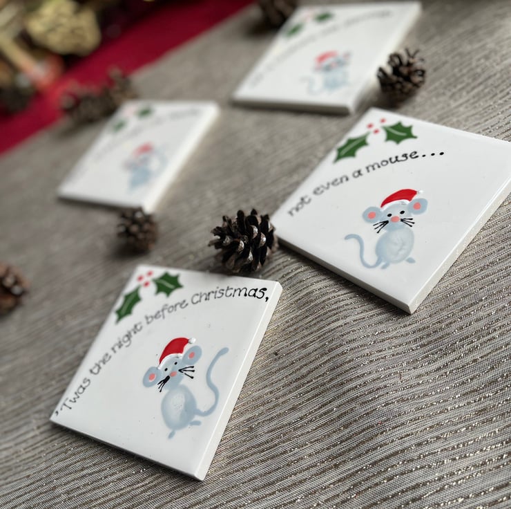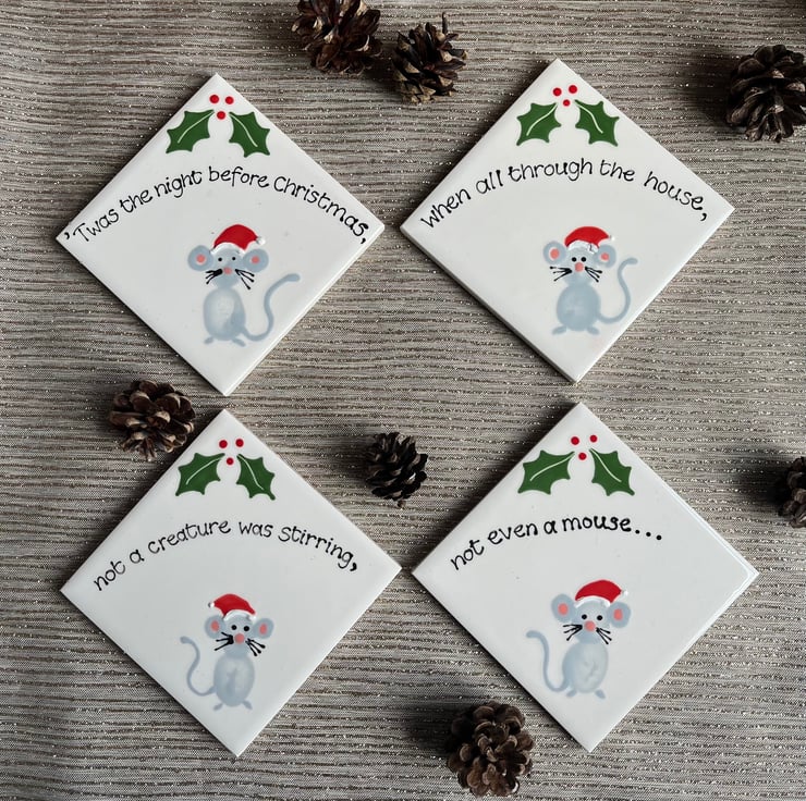 A set of 4 ceramic coasters created around the iconic poem and featuring the Christmas mouse!