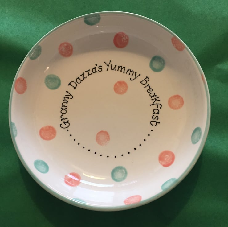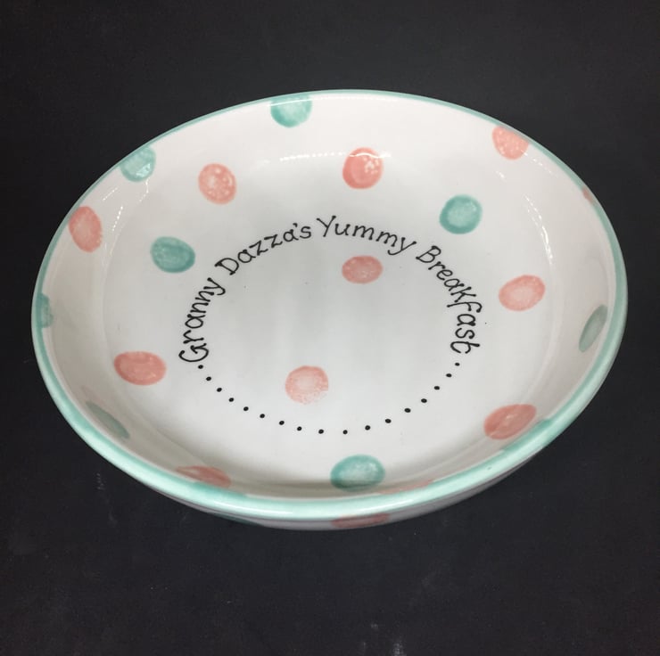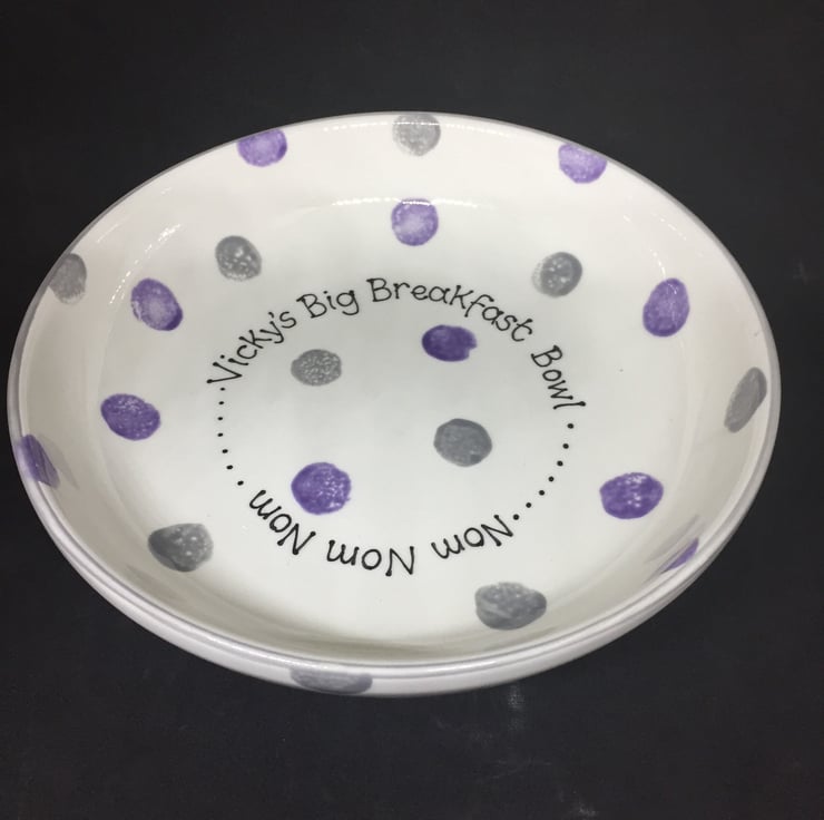 Please specify name breakfast of your choice and up to 3 colours of dots when you order. See colour tile in photos for available colours.