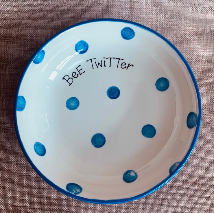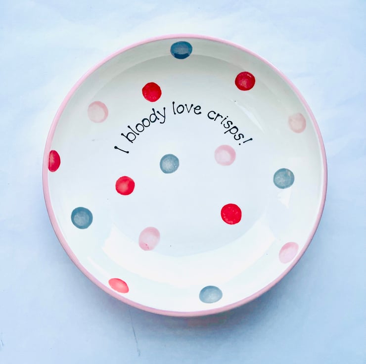 I start with a blank item of bisque - the name for a blank piece of unfired pottery. This is my canvas and then I draw on the design before painting with special paint. The item is then glazed and fired in an industrial kiln to 1000 degrees. This is a lengthy process and takes a full 8 hours to heat up and another 8 hours to cool down. There s lots of processes to go through to create your pieces hence the 2-3 week turnaround time. Please let me know if you have any questions about the process or would like me to create anything bespoke.