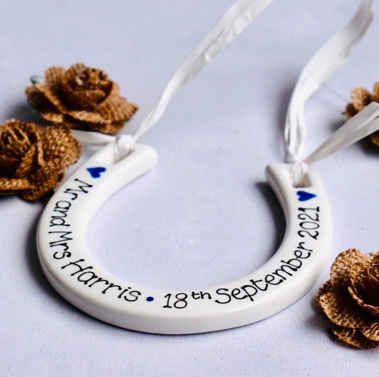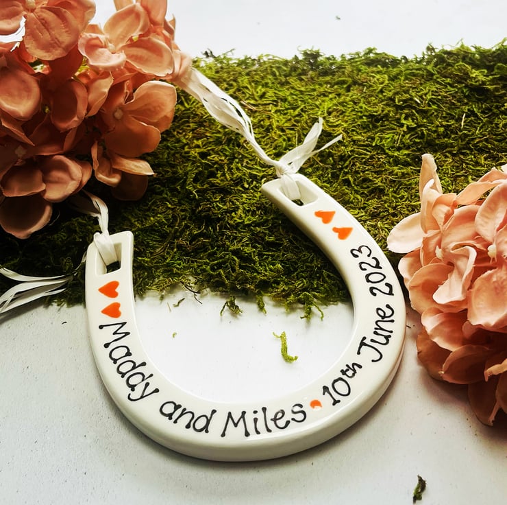 Please specify names and date of your choice followed by a colour choice for decoration. I can also add a Love from message on the back to a maximum of 25 characters.