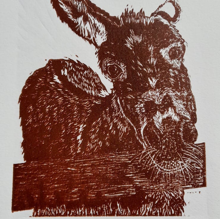 This burnt sienna coloured linoprint is perfect for the donkey enthusiast in your life. Fun and friendly 'Dennis' is a great piece of wall art, perfect for any wall in your home.