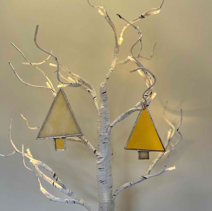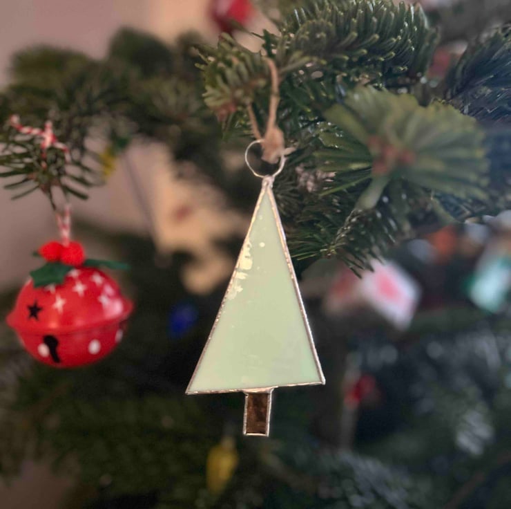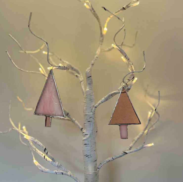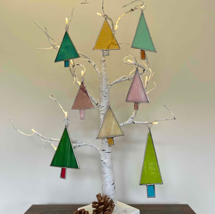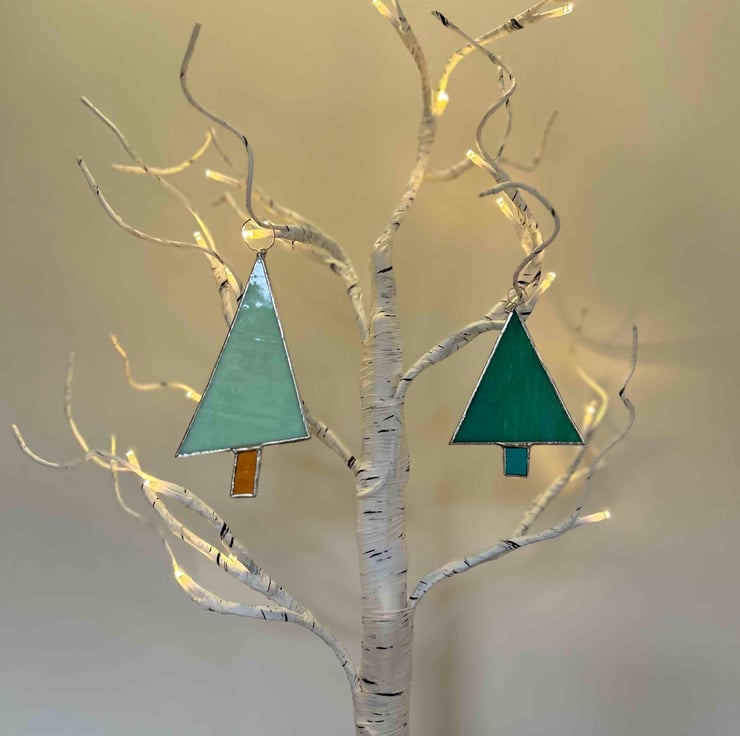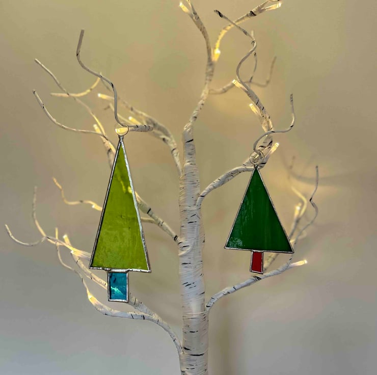 Handcrafted Tiffany style stained glass tree - ideal for use as a sun catcher or Christmas hanging decorations.